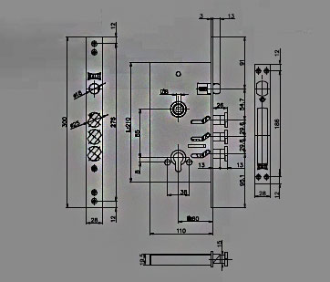 Врезной цилиндровый замок для металлических дверей Kale-kilit 282 RD (60 мм). С поворотными ригелями, с подшипником. Цвет: хром. Цвет цилиндра-золотой.